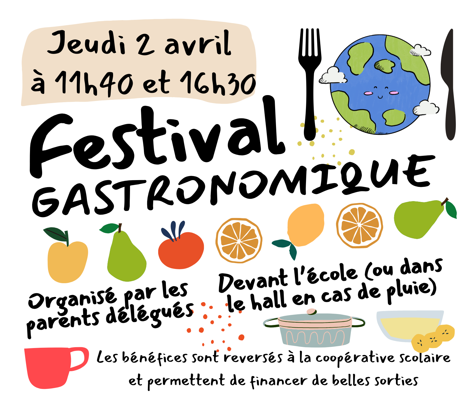 Si les parents des classes GS2, MS3, GS5, GS7 et PS9 le peuvent, merci de préparer un gâteau, une tarte… ou toute spécialité de votre famille ou de votre pays d’origine !