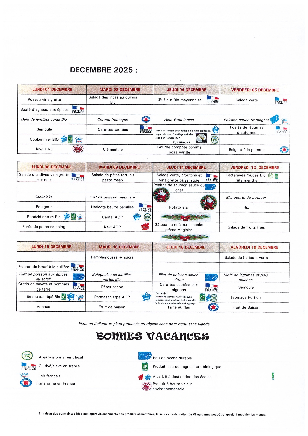 VENDREDI 19 DÉCEMBRE MATIN